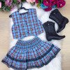 Conjunto Junino Miss Cherry Melissa Xadrez Azul Bebe