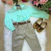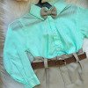 Conjunto composto por: Camisa social Manga Longa linho na cor Verde,cinto na cor Marrom, calça na cor Bege e Gravata borboleta bege.   * Calçados vendido separadamente, disponível em nosso site na categoria calçados. * LEMBRANDO QUE PODERA HAVER VARIAÇÃO DE TONALIDADE DO PRODUTO DEPENDENDO DA TELA DO SEU DISPOSITIVO.