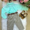 Conjunto Masculino Miss Cherry Social Verde Linho com Calça Bege Henrique
