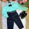 Conjunto composto por: Camisa social Manga Longa linho na cor Verde claro, cinto na cor Preto, calça na cor preta e Gravata borboleta preta.   * Calçados vendido separadamente, disponível em nosso site na categoria calçados. * LEMBRANDO QUE PODERA HAVER VARIAÇÃO DE TONALIDADE DO PRODUTO DEPENDENDO DA TELA DO SEU DISPOSITIVO.   Camisas Itália 100% algodão    Calça twill 100% poliéster