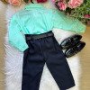 Conjunto Masculino Miss Cherry Social Verde Linho Com Calça Preta Henrique