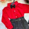 Conjunto composto por: Camisa social Manga Longa linho na cor Vermelho, cinto na cor Preto, calça na cor Preto e Gravata borboleta Preto. * Calçados vendido separadamente, disponível em nosso site na categoria calçados. * LEMBRANDO QUE PODERA HAVER VARIAÇÃO DE TONALIDADE DO PRODUTO DEPENDENDO DA TELA DO SEU DISPOSITIVO. Camisas Itália 100% algodão Calça twill 100% poliéster