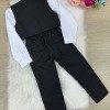 Conjunto composto por: Camisa social manga longa na cor branca, calça, colete e gravata borboleta na cor preta. Demais peças ou acessórios, não inclusos.