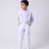 Conjunto Social Infantil Leo – Estilo e Elegância para Momentos Especiais Este conjunto social infantil é a escolha perfeita para deixar os pequenos elegantes e confortáveis em casamentos, batizados, aniversários, formaturas e cerimônias em geral.Com um visual sofisticado e moderno, é ideal para quem busca estilo com praticidade e ótimo caimento. Detalhes do Produto: Camisa social branca de manga longa, confeccionada em microfibra 100% poliéster, com toque macio, leve e confortável; Calça branco em twill 100% poliéster, com corte reto e caimento elegante; Gravata borboleta branco, combinando com o tom da calça; Suspensório branco com regulagem ajustável; Cinto branco com fivela metálica, ajustável. Atenção:   Calçados e demais acessórios vendidos separadamente; Produto delicado: recomendamos lavagem à mão com sabão neutro; Tonalidade pode variar de acordo com o lote; As medidas podem variar em até 2cm. Recomendamos sempre consultar a tabela de medidas antes da compra para evitar erros. As cores do produto podem sofrer variações de tonalidade conforme a configuração da tela do seu dispositivo.