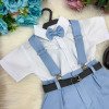 Este conjunto social infantil é a escolha perfeita para deixar os pequenos elegantes e confortáveis em eventos como casamentos, batizados, aniversários, formaturas e cerimônias em geral. Com um visual sofisticado, ele é ideal para quem busca estilo com praticidade. Detalhes do Produto: Camisa social branca de manga curta, confeccionada em microfibra 100% poliéster, com toque macio e caimento leve. Short preto em twill 100% poliéster, com acabamento moderno na barra dobrada. Acompanha gravata borboleta azul claro, suspensório azul claro com regulagem e cinto ajustável preto com fivela metálica. Itens Inclusos:CamisaShortGravata borboletaSuspensórioCinto Calçado não incluso – vendido separadamente. Disponivel em nosso site na categoria calçados meninosAs tonalidades das peças podem variar de acordo com as configurações de tela do seu dispositivo.Para garantir o ajuste ideal, consulte sempre a nossa tabela de medidas antes de finalizar a compra. As medidas podem apresentar pequenas variações conforme o lote de fabricação.