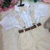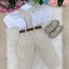 Conjunto Miss Cherry Suspensorio Luiz Linho Bege