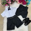 TECIDO: CAMISA BRANCA MICROFIBRA 100% POLIESTERTECIDO DO SHORTS TWILL COLORIDO 100% POLIESTER   Conjunto composto por: Camisa social na cor Branca, gravata borboleta PRETO shorts na cor PRETO, Colete PRETO e Cinto PRETO Demais peças ou acessórios, não inclusos. Calçados Vendindos Separadamente  * LEMBRANDO QUE PODERA HAVER VARIAÇÃO DE TONALIDADE DO PRODUTO DEPENDENDO DA TELA DO SEU DISPOSITIVO