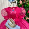 Confeccionado em tecido misto possui forro em poliéster e algodão para não incomodar a criança e proporcionando um caimento incrível e sofisticado, possui gola redonda, comprimento médio, mangas curtas e saia com glitter, possui elástico nas costas para melhor ajuste, acabamento com lindo laço na parte posterior do vestido completa o look dos sonhos!Cuidado Produto Delicado. Exige cuidado tanto no uso como na lavagem que deve ser feita a mão jamais lavagem a máquinaCuidado ao Vestir a criança se Forçar para entrar ou Puxar com força o tecido pode esgarçar a costura sendo assim NÃO REALIZAREMOS TROCA.   * Medidas podem variar em até 4cm * Caso queira o vestido mais armado, recomendamos o uso do saiote ou anágua de armação, disponível no nosso site na categoria acessórios. * Tiara vendida separadamente, disponível em nosso site na categoria acessórios. * Calçados vendido separadamente, disponível em nosso site na categoria calçados. * LEMBRANDO QUE PODERA HAVER VARIAÇÃO DE TONALIDADE DO PRODUTO DEPENDENDO DA TELA DO SEU DISPOSITIVO