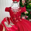 TECIDO 100% POLIESTEROBS: RENDA PODE VARIARConfeccionado em tecido misto possui forro em poliéster e algodão para não incomodar a criança e proporcionando um caimento incrível e sofisticado, possui gola redonda, comprimento médio, mangas curtas, possui elástico nas costas para melhor ajuste, acabamento com lindo laço na parte posterior do vestido completa o look dos sonhos! * Medidas podem variar em até 4cm * Caso queira o vestido mais armado, recomendamos o uso do saiote ou anágua de armação, disponível no nosso site na categoria acessórios. * Tiara vendida separadamente, disponível em nosso site na categoria acessórios. * Calçados vendido separadamente, disponível em nosso site na categoria calçados. * LEMBRANDO QUE PODERA HAVER VARIAÇÃO DE TONALIDADE DO PRODUTO DEPENDENDO DA TELA DO SEU DISPOSITIVO
