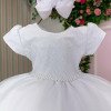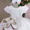 TECIDO 100% POLIÉSTER Confeccionado em tecido misto possui forro em poliéster e algodão para não incomodar a criança e proporcionando um caimento incrível e sofisticado, possui gola redonda, comprimento médio, mangas curtas, contém, também, elástico nas costas para melhor ajuste, acabamento com lindo laço na parte posterior do vestido completa o look dos sonhos! * Medidas podem variar em até 2cm. * Caso queira o vestido mais armado, recomendamos o uso do saiote ou anágua de armação, disponível no nosso site na categoria acessórios. * Tiara vendida separadamente, disponível em nosso site na categoria acessórios. * Calçados vendido separadamente, disponível em nosso site na categoria calçados. * LEMBRANDO QUE PODERA HAVER VARIAÇÃO DE TONALIDADE DO PRODUTO DEPENDENDO DA TELA DO SEU DISPOSITIVO